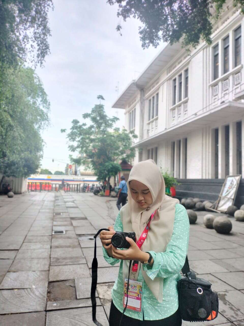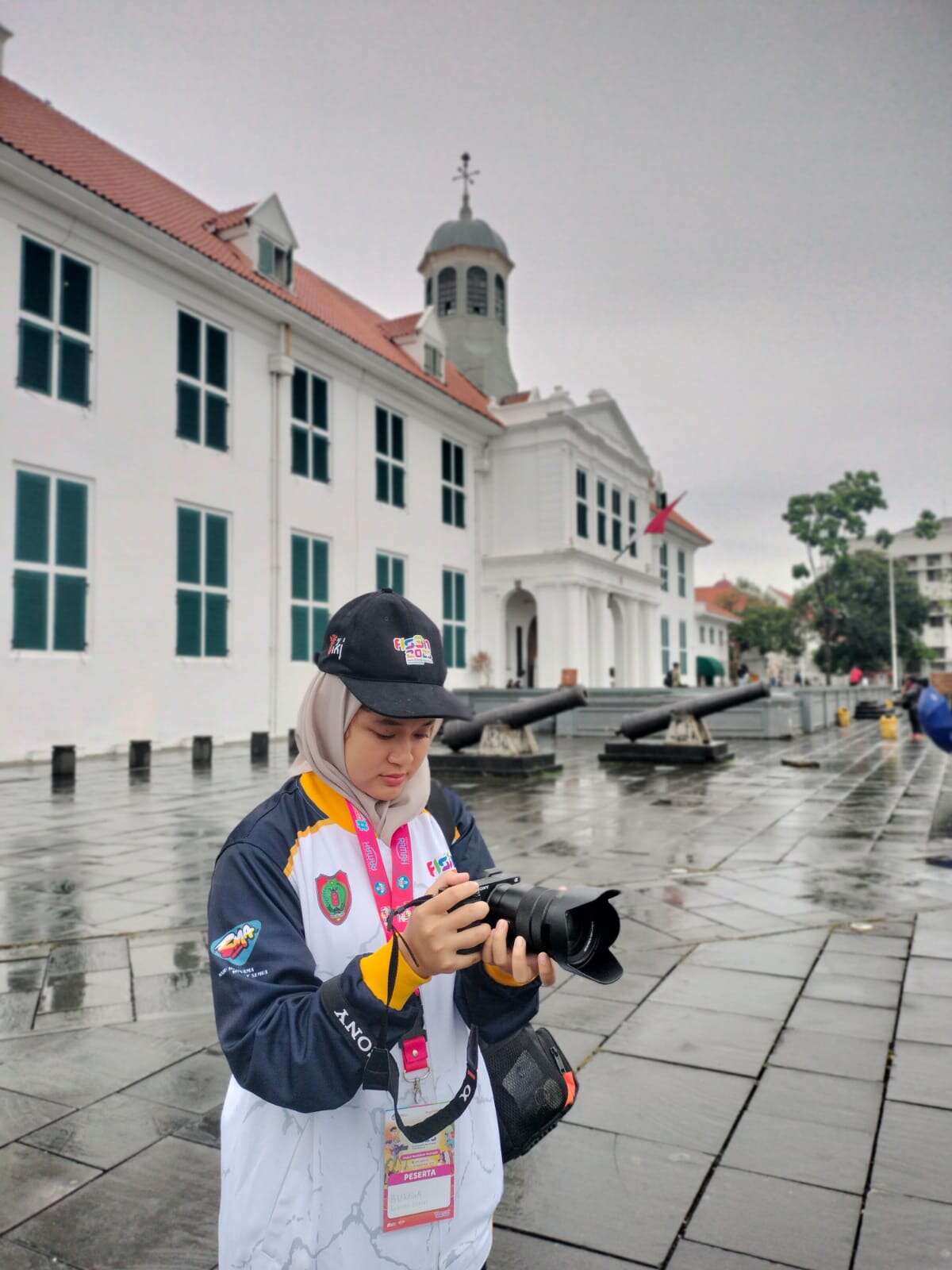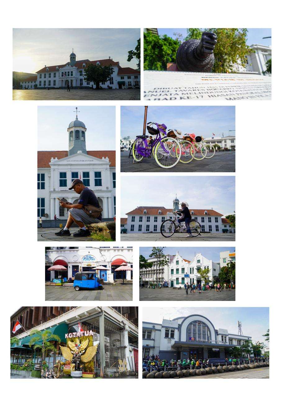 Bunga menjelajahi lanskap sejarah—mulai dari Museum Fatahillah, area sepeda ontel, hingga sudut artistik Kota Tua—untuk menghasilkan karya bertema cerita visual perkotaan.
