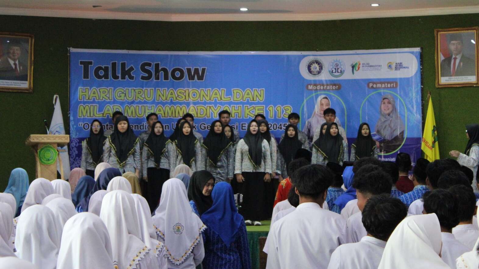 Kegiatan diawali dengan pembacaan Kalam Ilahi oleh Akbar Azmi yang melantunkan Q.S. Ali Imran ayat 102–104. Suasana khidmat semakin terasa saat paduan suara SMAMSA membawakan lagu Indonesia Raya, Sang Surya, dan Mars Forum Guru Muhammadiyah dengan iringan piano oleh Vicky Vandreas dan dirigen La Rose.